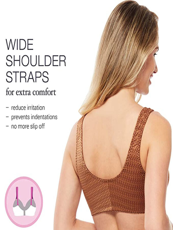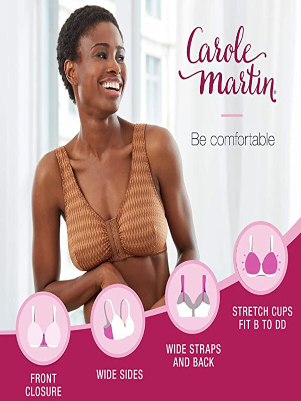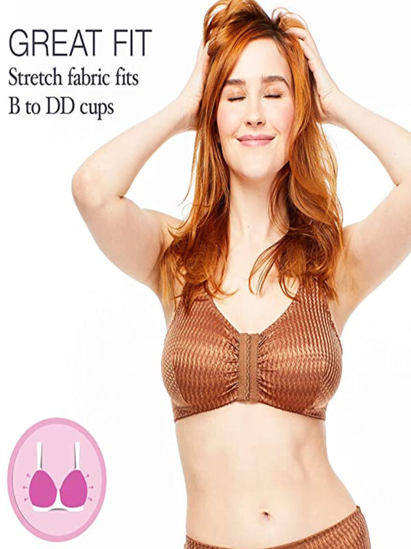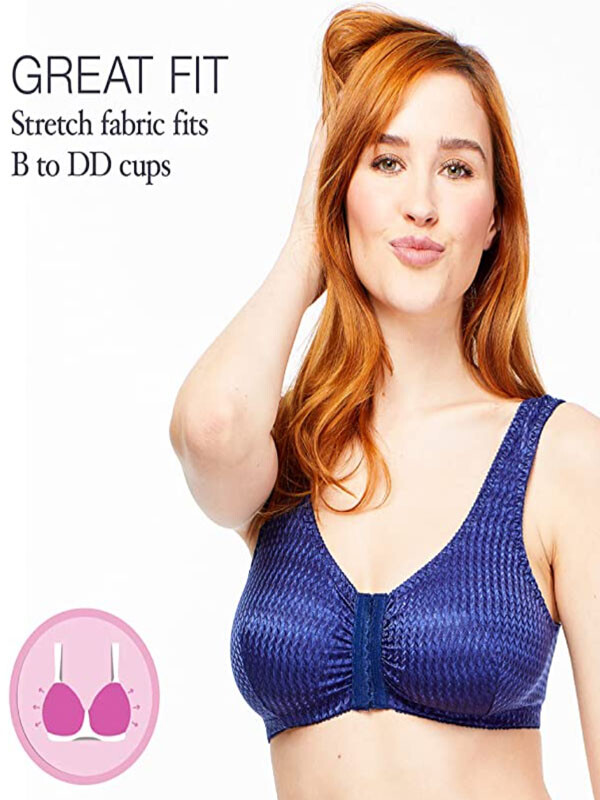 fits B, C and D cups. Front hook and eye closure for easy-off convenience