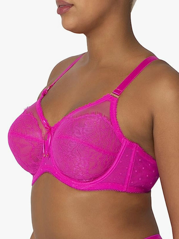 가슴선을 따라 섬세하게 비치는 고급 레이스로 디자인 되었습니다.