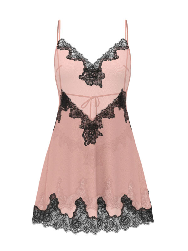 Chiffon Rose Lace-Trim Mini Slip Dress
